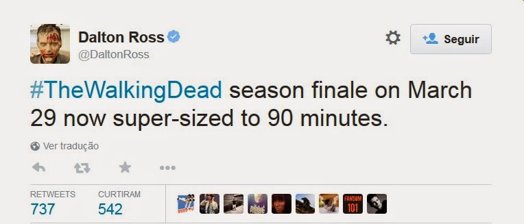 Ótima noticia para os fãs de "The Walking Dead", a Season Finale da Quinta Temporada será estendida e terá duração total de 90 minutos, ou seja, 30 minutos a mais que o costume.
